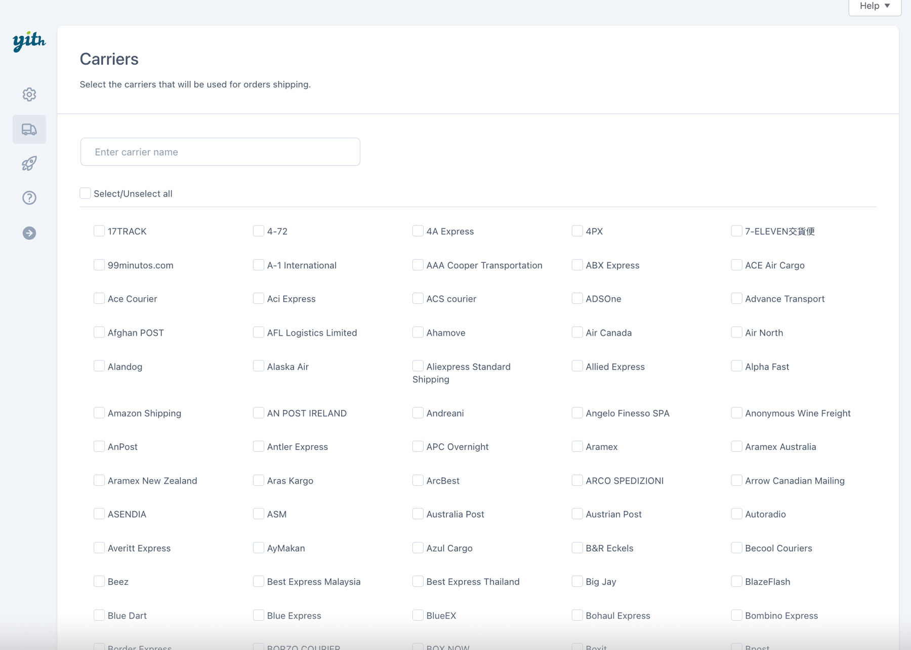 Choose the carriers in charge of your shipping from a list of over 480 supported services