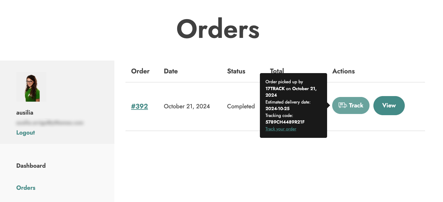 Show the tracking info in the users’ Orders page