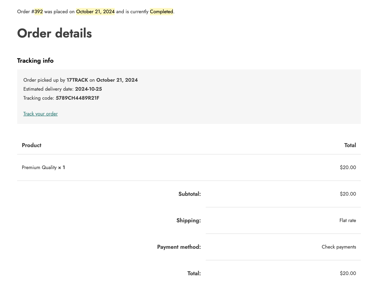 Use the shortcode to create a custom order tracking page on your shop