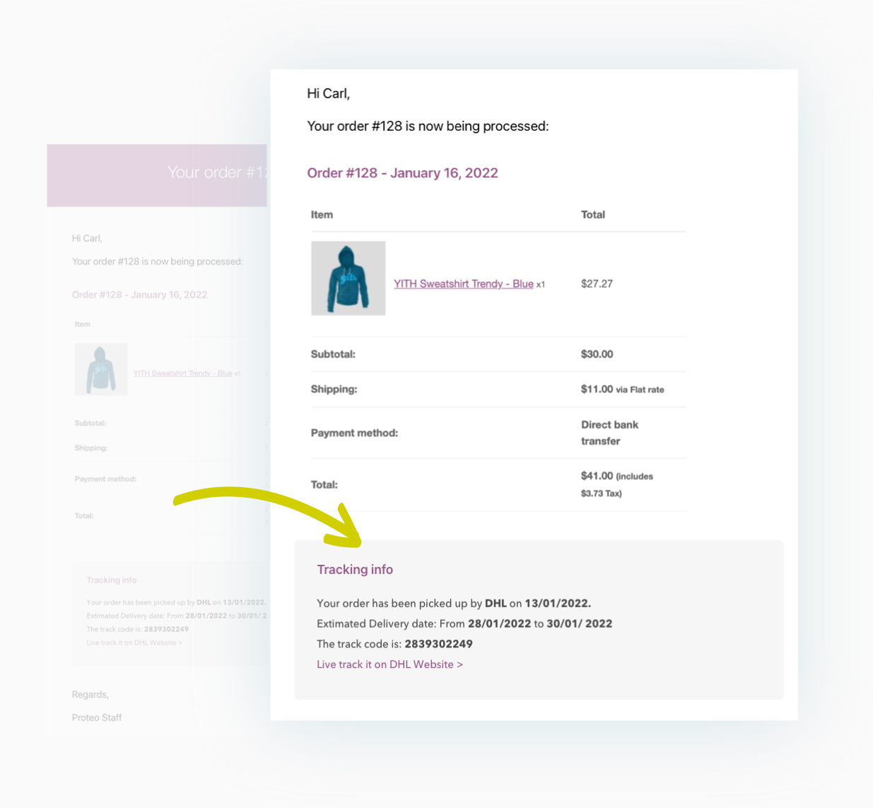 Show the tracking data to the user by inserting it in the order emails