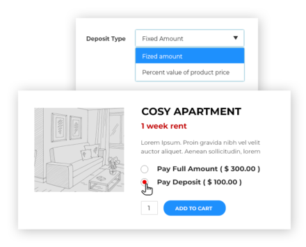 Are you using our YITH Booking & Appointment plugin? Thanks to the dedicated integration, you can allow your customers to leave a deposit for the booking (of an apartment, trip, legal advice, etc.) and choose when they have to pay for the balance (e.g. three days before the booking start date).