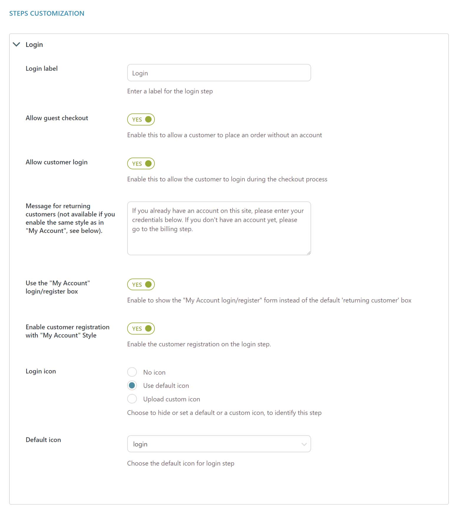 • Customize the message for returning customers in the “Login” step