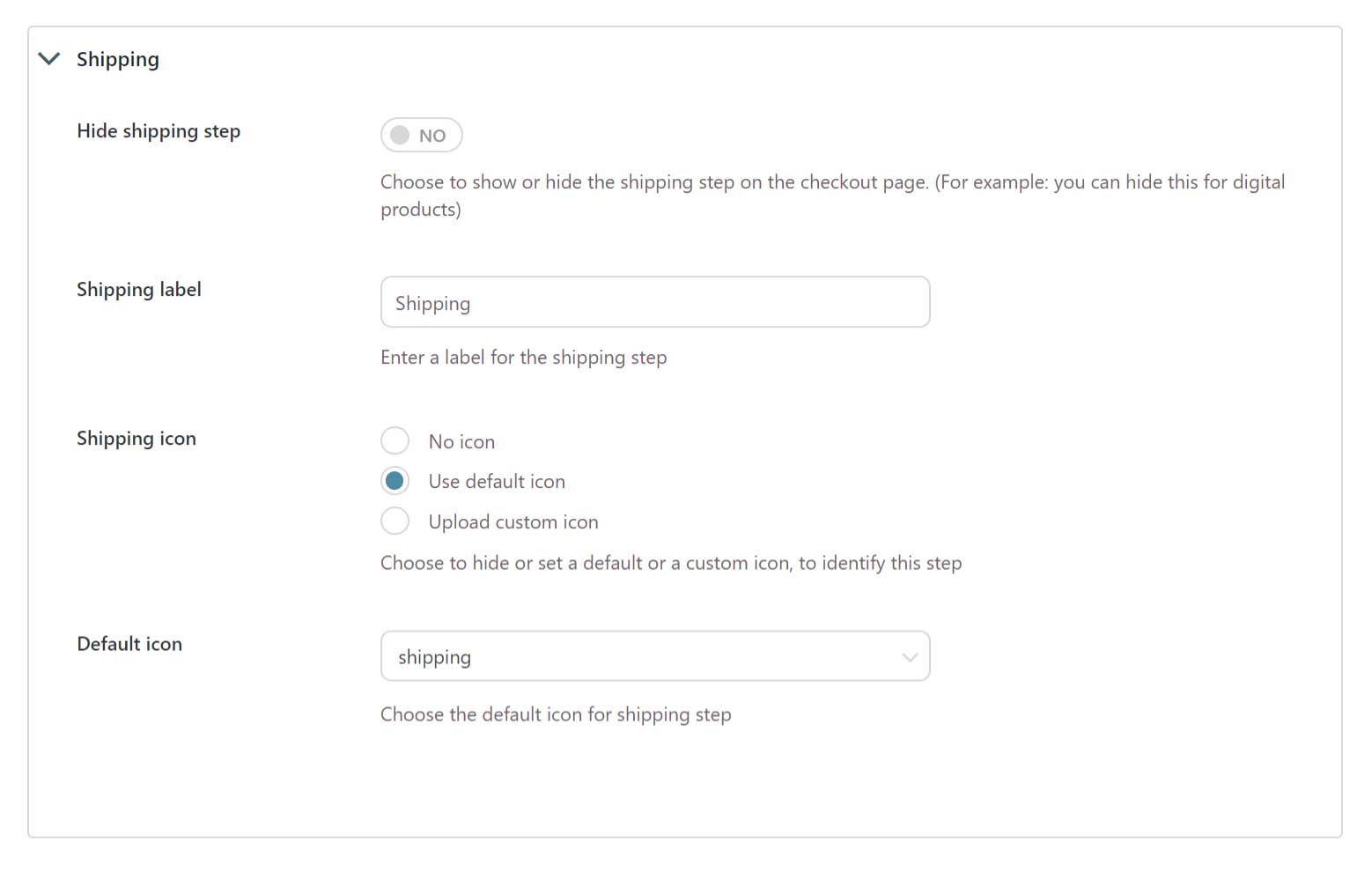 • Choose whether to show or remove the Shipping step