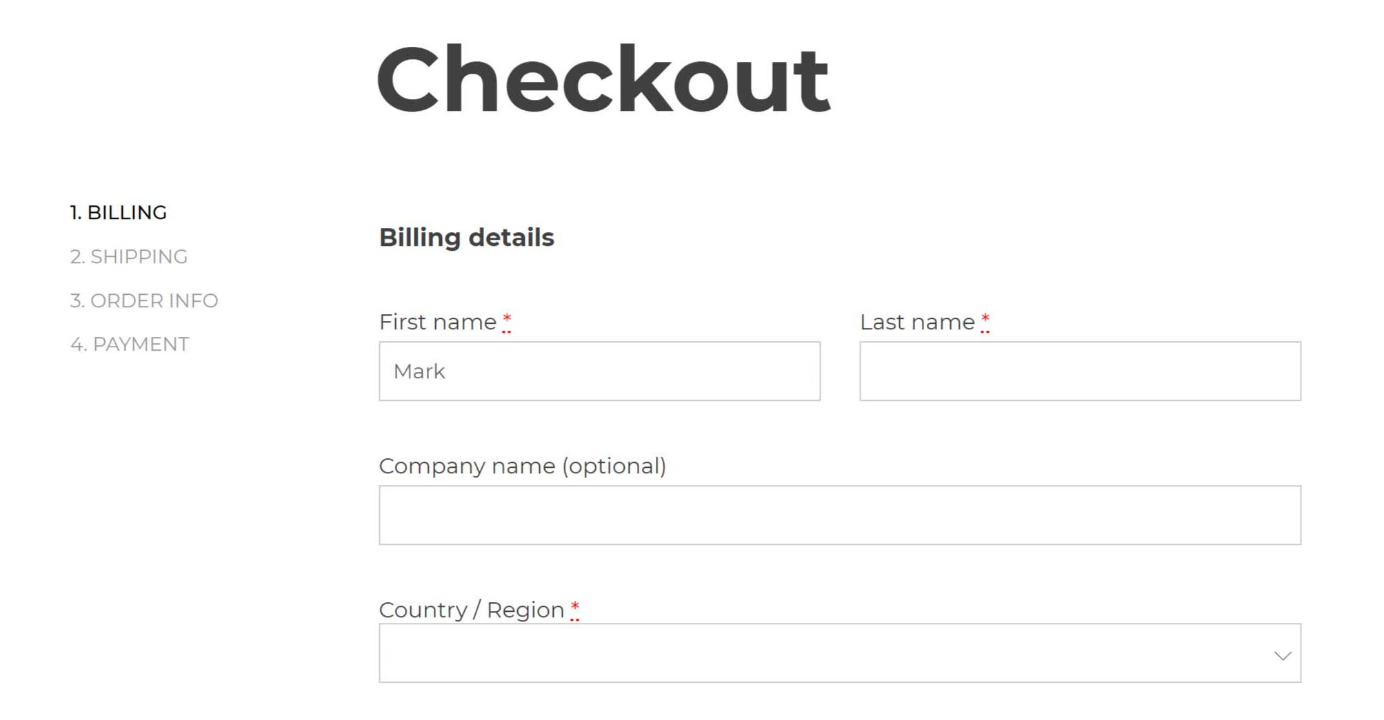 Usability tests confirm that a multi-step checkout is much more effective if there are no more than four steps in total. To streamline the process, combine Billing and Shipping Info into one step and Order and Payment Info into another step.