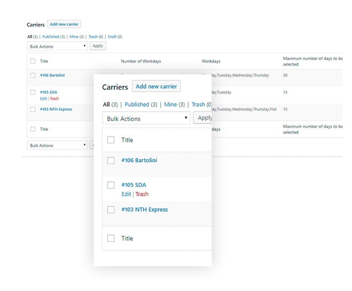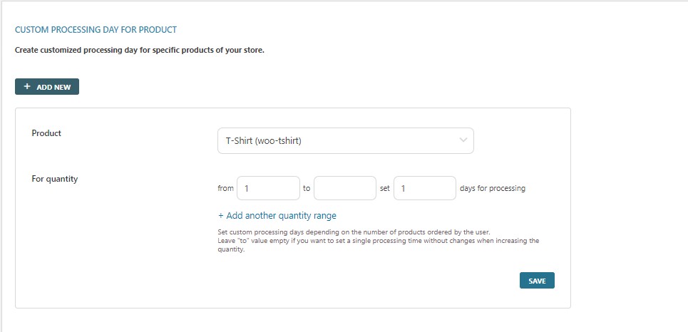 Delivery dates can be globally set for orders but if the shipping for some products requires fewer or more days compared with what previously specified in “Required Workdays”, you can create Custom Processing Day rules that can be applied to a specific product or product category.
