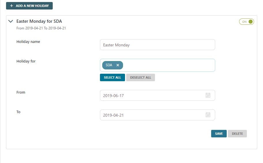 By inserting a range of days on which deliveries won’t be available