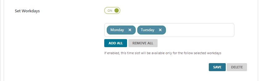 Specify the days and times of your deliveries: the system will automatically show users the dates they can select