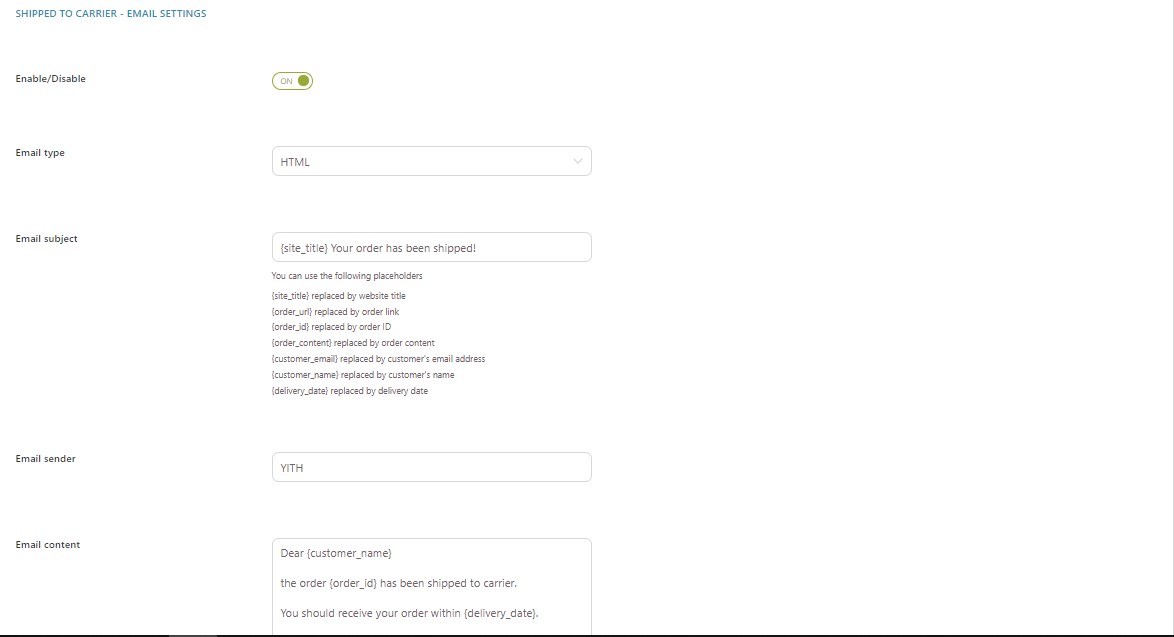 Shipped to carrier email