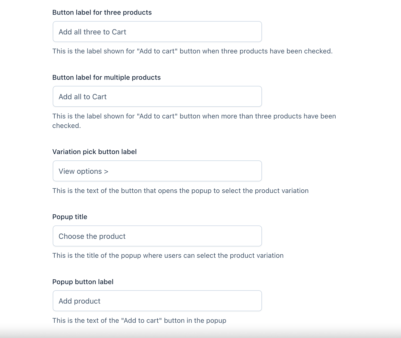 Thanks to the plugin’s versatility, you can customize all the texts displayed to the user, such as the section title and the text of the “Add to Cart” button. You can also customize the colors of the whole section: background color, button color, etc.