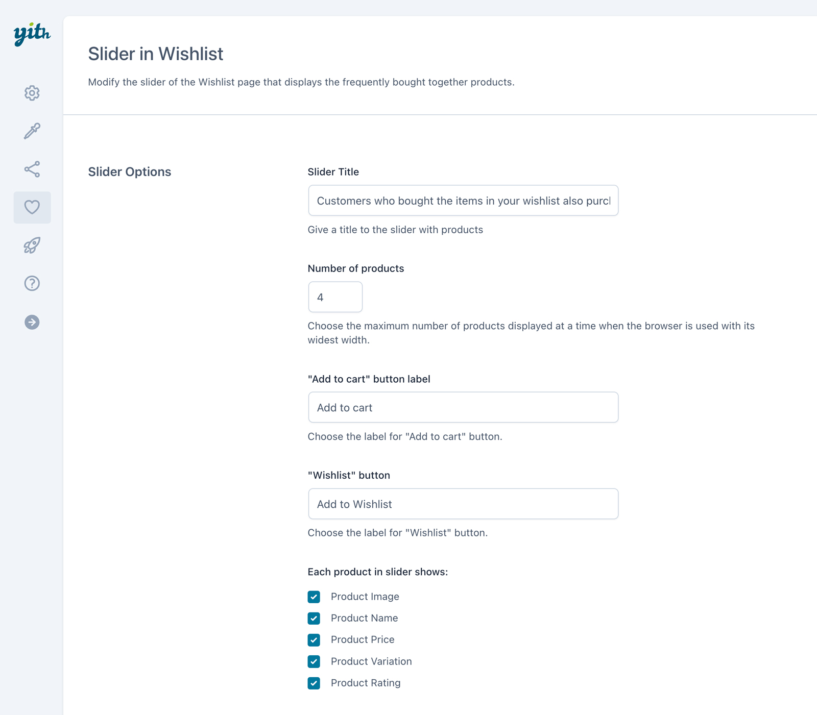 Thanks to the integration between the plugins it will be possible to add a slider to the wishlist page showing products that are frequently bought together with the wishlist items.