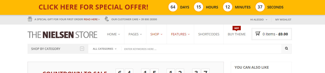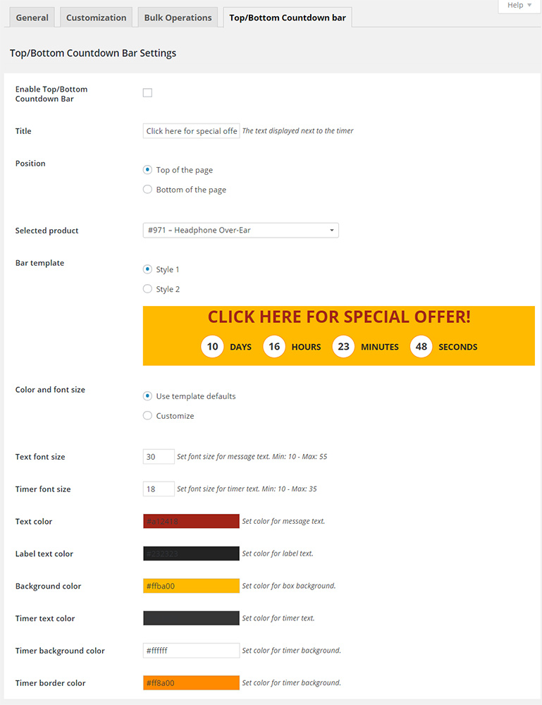 • Freedom to add a "Top bar" on every page that contains the countdown for a specific product