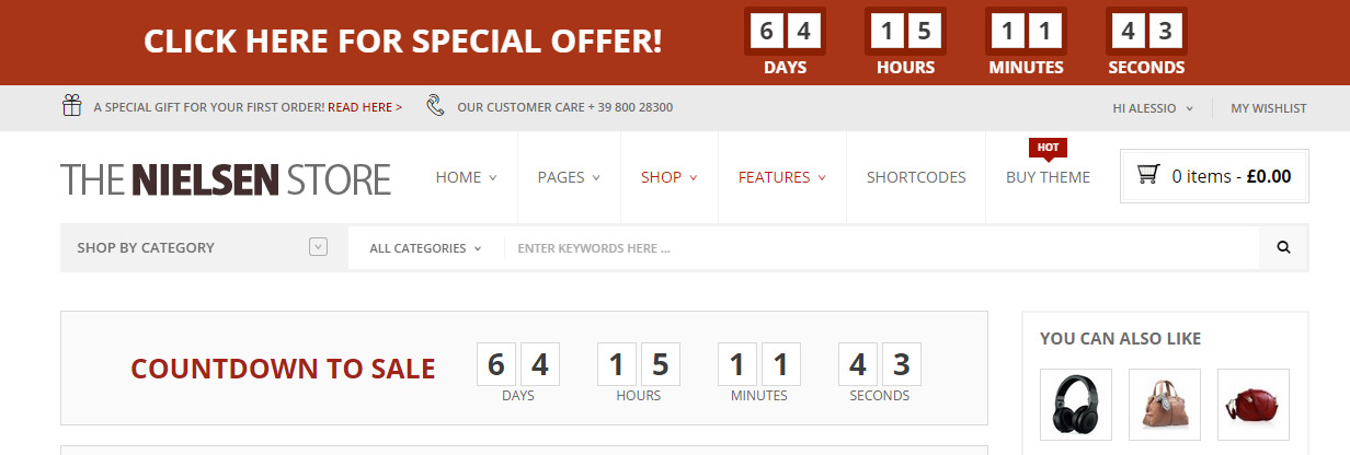 • Freedom to place a unique countdown for groups of products (product selection, product category, recent products, discounted products, “featured” products)