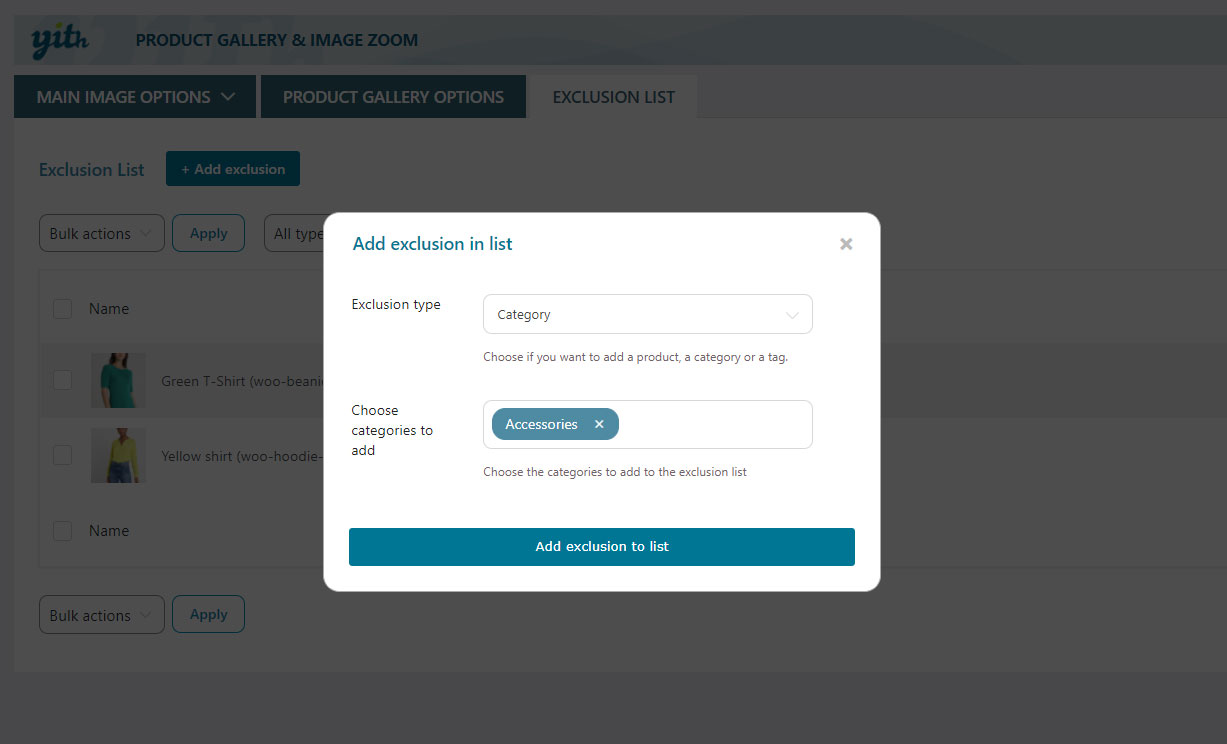 Do you want to disable the zoom option on some products or specific categories of your shop and keep it active only on selected products? The Exclusion List bundled in the plugin will grant you the highest flexibility.