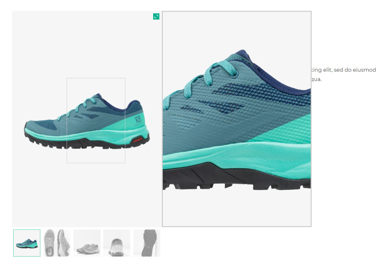 Allow your users to watch even the smallest detail of your products by enabling the zoom feature on your images. You can decide whether to use an icon to highlight the zoom option or not, set the zoom position in relation to the main product image (inside, next to, above, or below), and set the size of the zoom window.