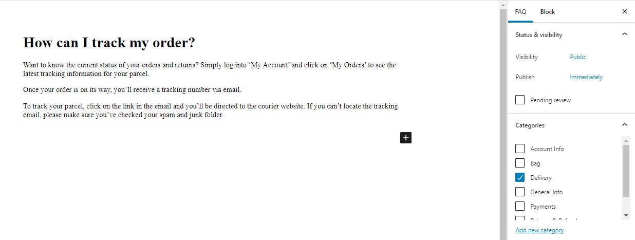 Create FAQ categories to let your users filter the questions