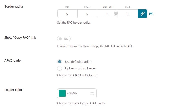 • Choose whether to show a “Copy link” on each FAQ