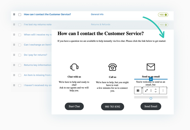 Do you want to create multiple FAQ pages or show some of the questions on the Customer Care page and others in the footer? No problem: with this plugin, you can create unlimited FAQs and leverage the potential of Gutenberg blocks to set up their content. This way, you can create advanced FAQs and add text, buttons, images, icons, etc.