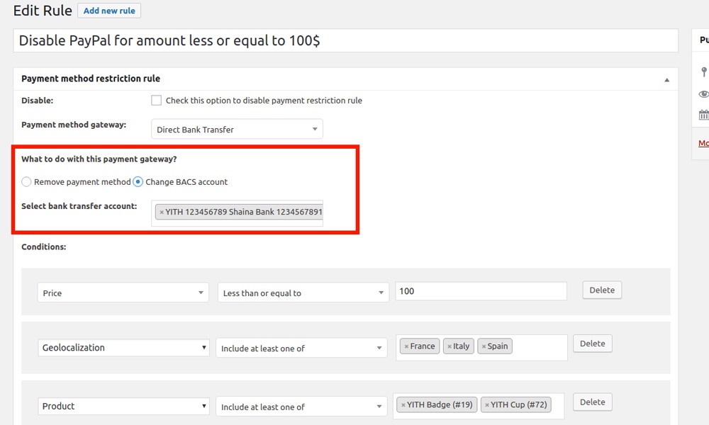 WITH YITH PAYMENT METHOD RESTRICTIONS YOU CAN: