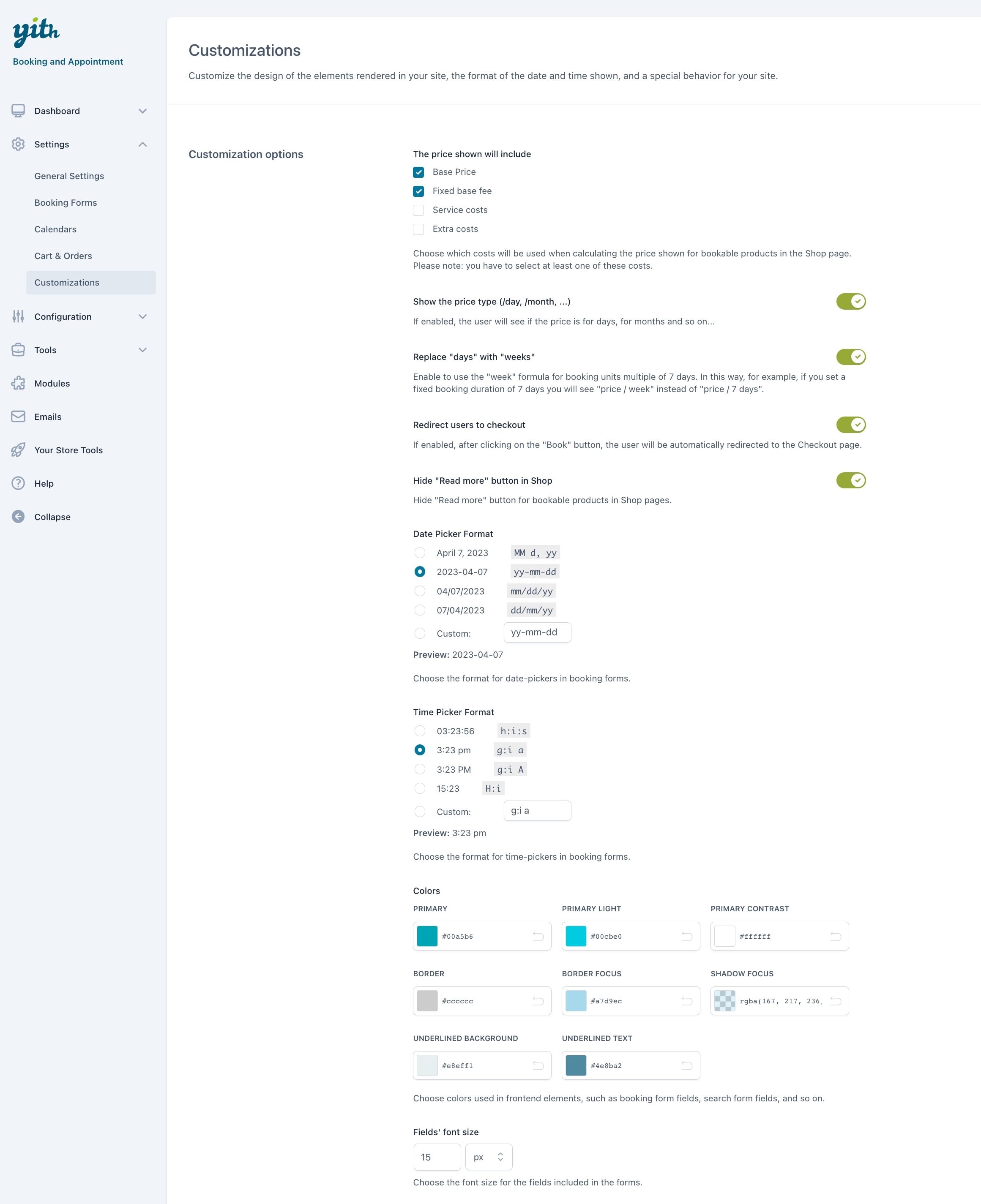 Thanks to the new integration with our YITH WooCommerce Deposits / Down Payments plugin, you will be able to ask your customers to pay a deposit upfront at the time of booking (e.g. 50%) and request the balance payment of the booking at a later time (for example, one week before the booking starts).
