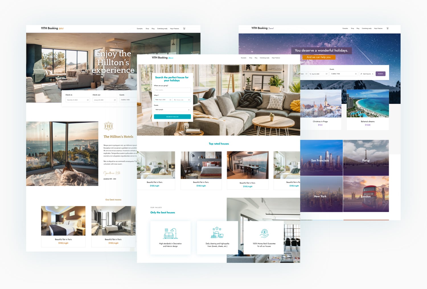 Let your users search by location (e.g. they can search for apartments available in Paris or Lisbon only) or by services (e.g. search only apartments with a swimming pool or air conditioning). Show or hide “dates” and “person” fields, customize texts of search parameters and copy and paste the shortcode wherever you want on the site; in the header, just like in our demos, in sidebars, within a page, etc.