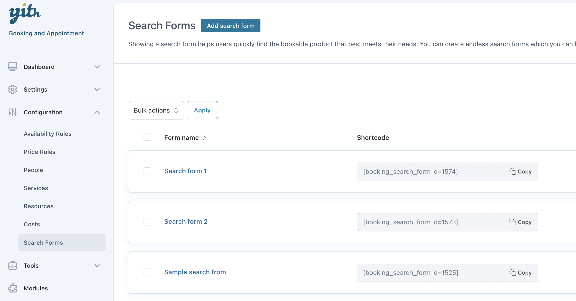 Create custom search forms and use shortcodes to add them everywhere you want on your site
