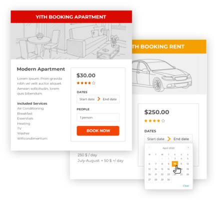 Would you like to let your customers book a single service (like, for example, an appointment at the dentist) or create a portal with one hundred apartments for rent? YITH Booking & Appointments for WooCommerce is the perfect solution for any kind of product or service offered as a booking, rental, or hire. Add an image to identify the products, a description, and, if you want, the address or location to help your users find you more easily by taking advantage of Google API.