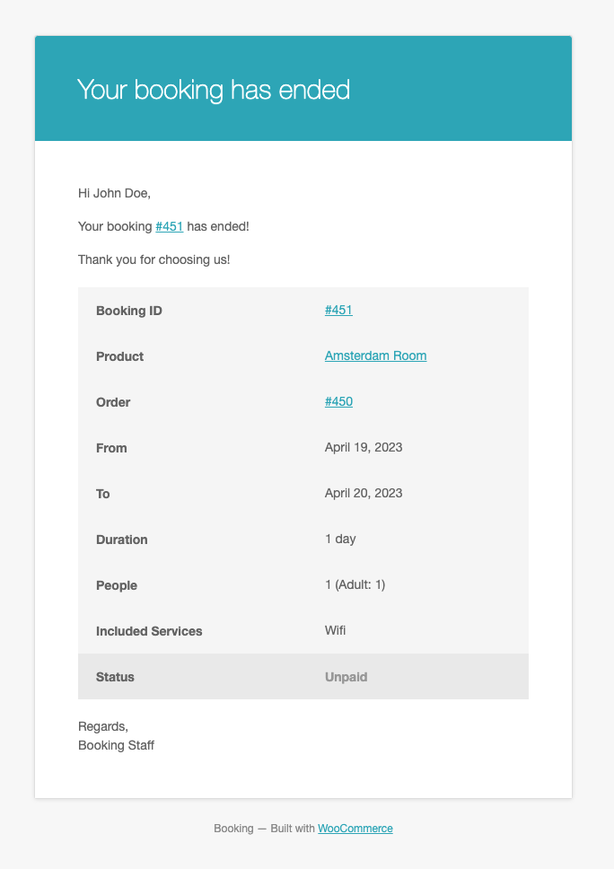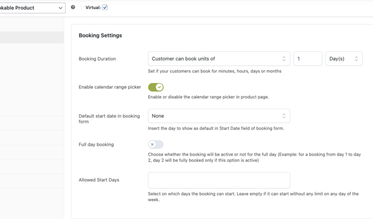 Booking needs change based on the service or product; you can choose to accept only weekly or monthly bookings for apartments and, at the same time, hourly bookings for a counseling service, a therapist, or your personal training session. When creating a booking product, you can define the type of booking and customize the duration, price, maximum number of bookings accepted, and so on. You can accept bookings automatically or set them with the “pending” status and approve them manually. Additionally, you can decide whether to let the user cancel the booking or not.