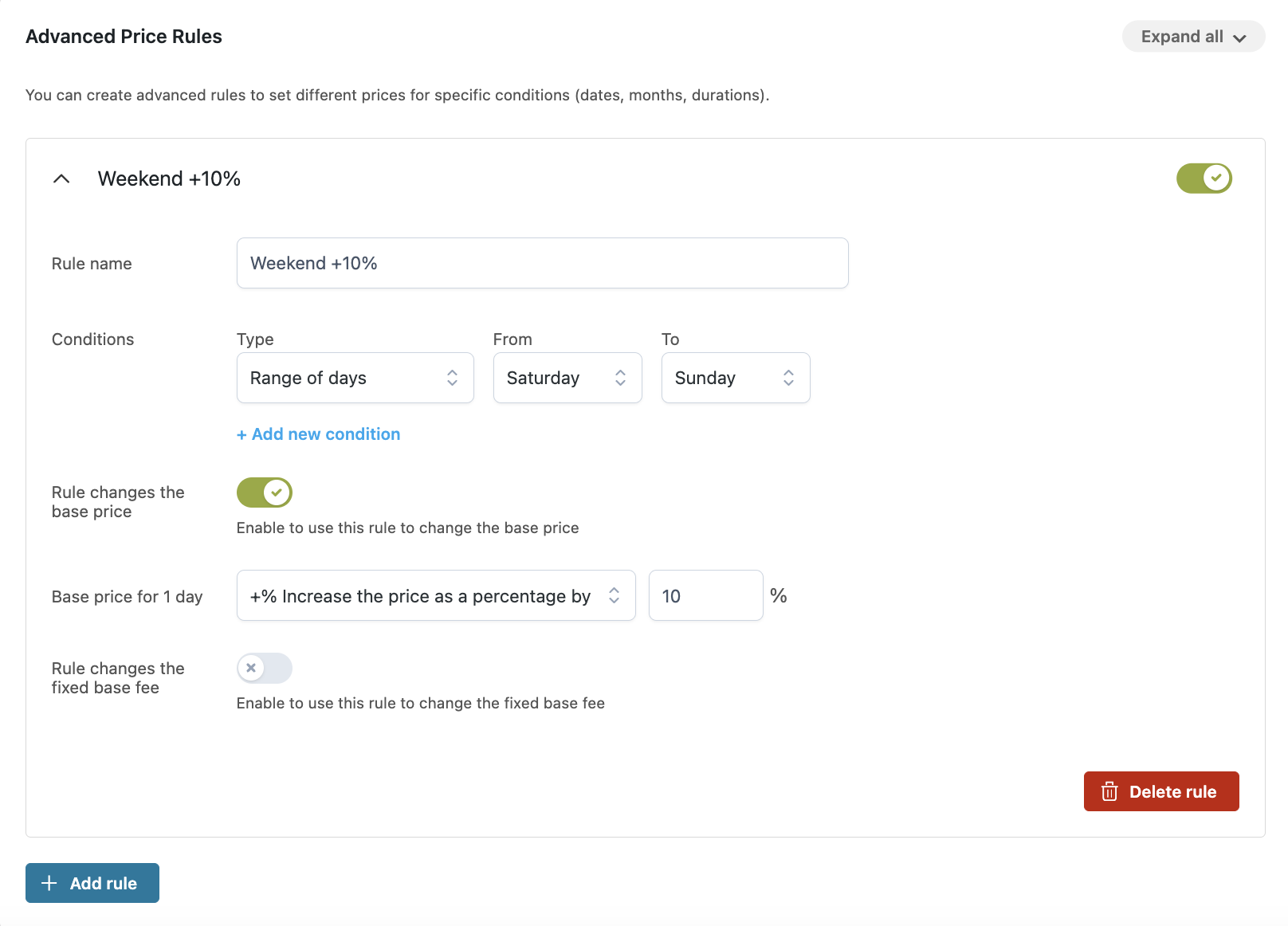 Create advanced price rules to manage high and low seasons, discounts, etc.