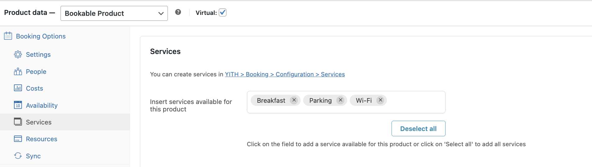 Create unlimited services, free or with a fee, to assign to your booking products