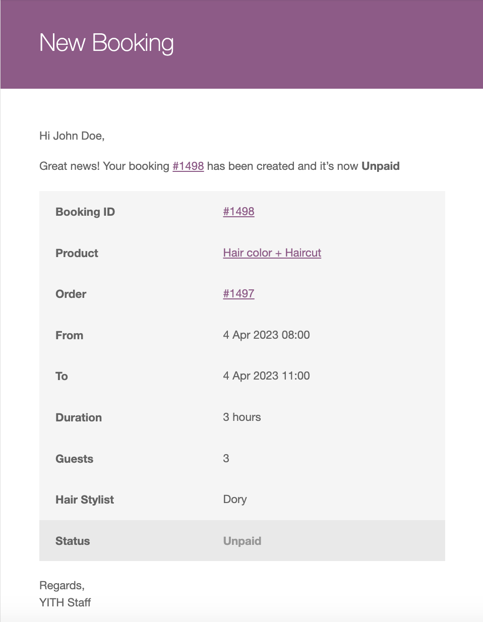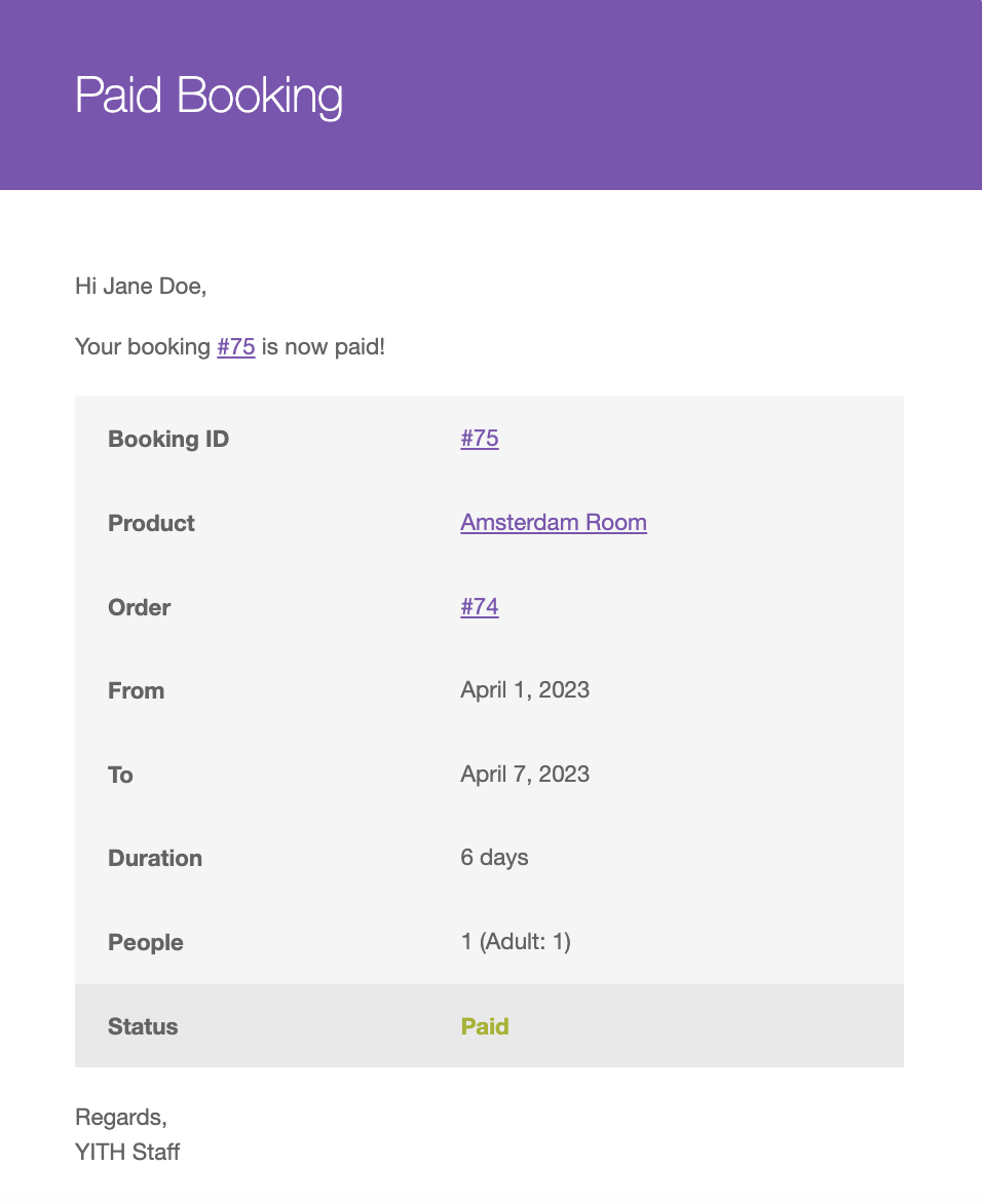 Stay up-to-date about everything occurring in your shop; the plugin sends automatic notifications both to the admin and customer every time a booking is created, edited, or canceled, whenever the booking status changes and the payment is confirmed. You will also be able to send custom emails before the booking starts and after it ends, deciding in both cases when to send them (for example, an email will be sent one week before the booking starts and the other email will be sent three days after the booking is completed).