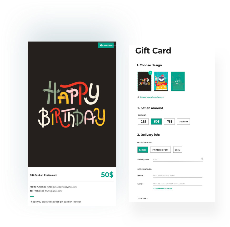 Vende tarjetas de regalo en tu tienda para aumentar las ventas y atraer a nuevos clientes.