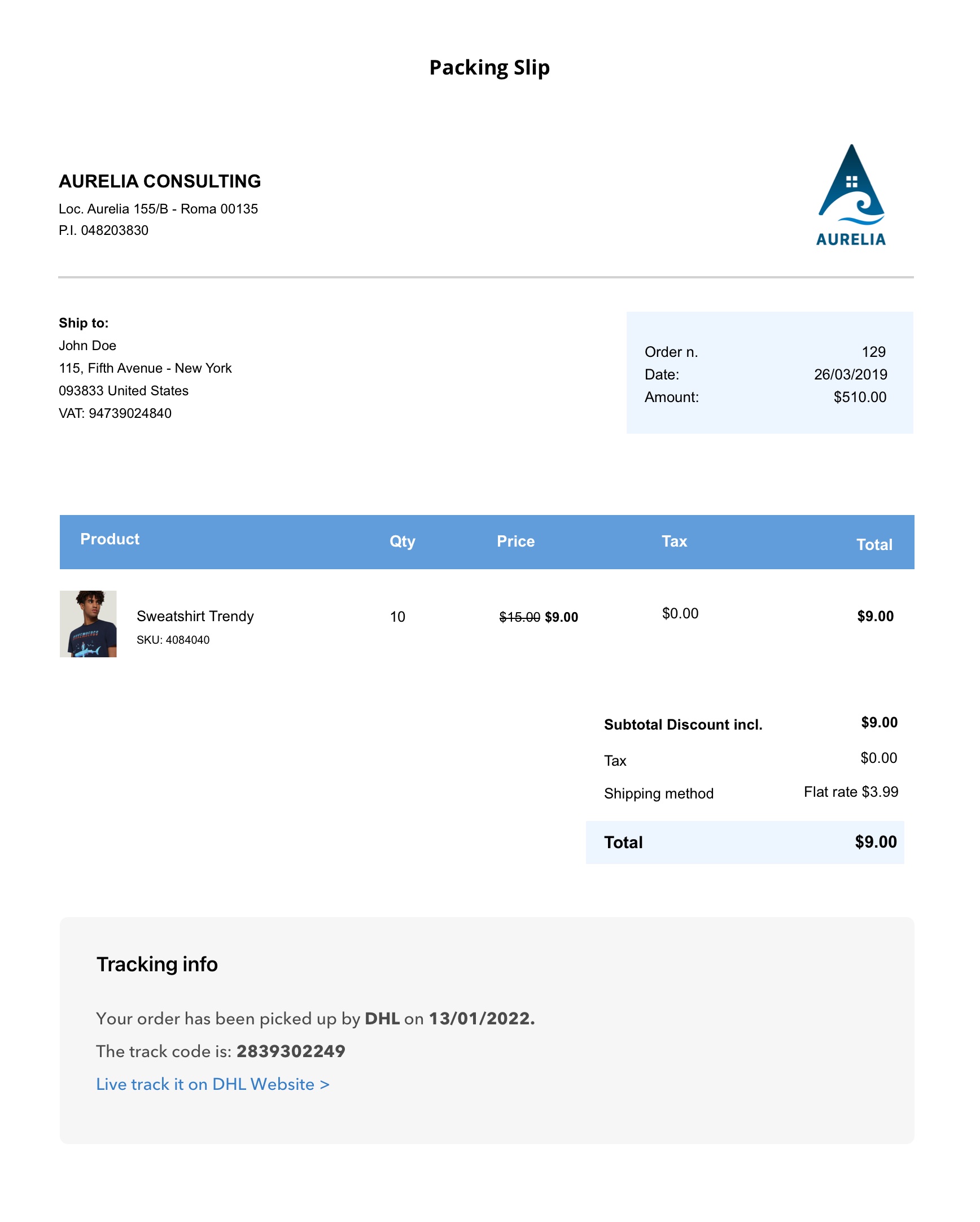 Sì, dopo aver inserito il codice di tracciamento, i dati verranno inclusi in ogni email relativa all’ordine. Con un clic su Traccia il tuo ordine, i clienti saranno reindirizzati al sito del corriere e di preciso alla sezione in cui potranno tracciare lo stato di spedizione.