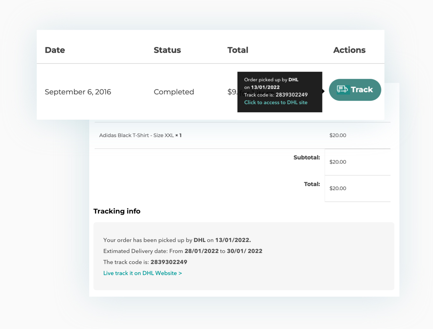Dare ai clienti uno strumento per monitorare l’intero processo di spedizione e consegna del prodotto con un solo clic semplificherà l’intero processo di vendita, ti aiuterà a rafforzare la loro fiducia nei confronti del tuo shop e ridurrà la mole di lavoro (telefonate, email, ecc.) a carico del servizio clienti.
