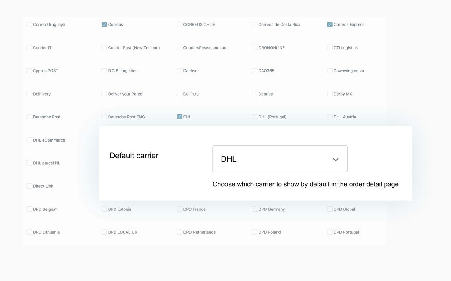 Seleziona i corrieri a cui ti appoggi da una lista con più di 480 servizi supportati
