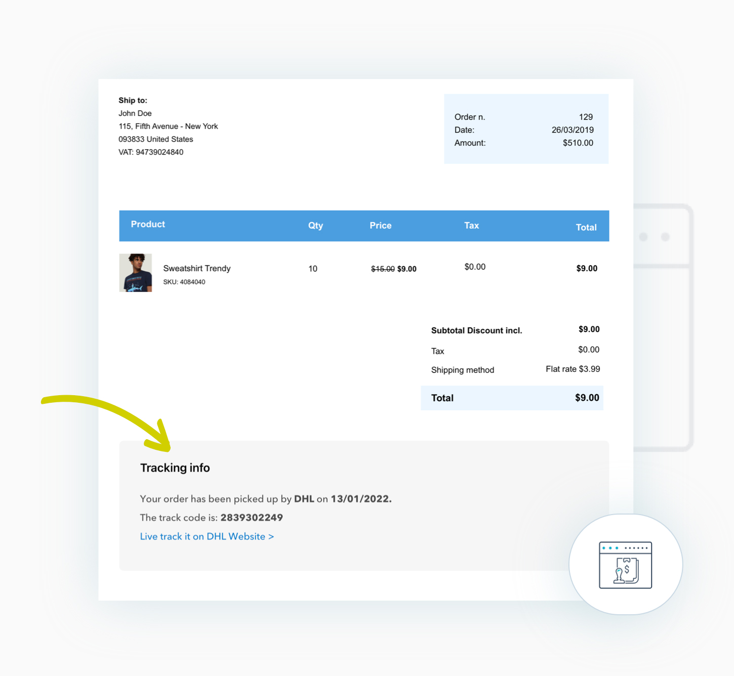 Mostra i dati di tracciamento al cliente inserendoli nelle email relative all’ordine