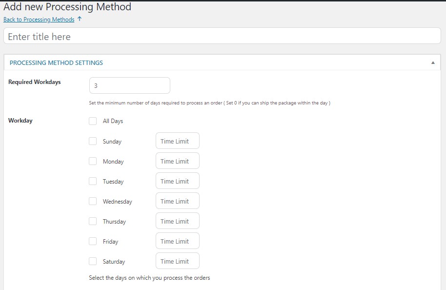 • Inserisci i giorni della settimana in cui gli ordini verranno elaborati e spediti
