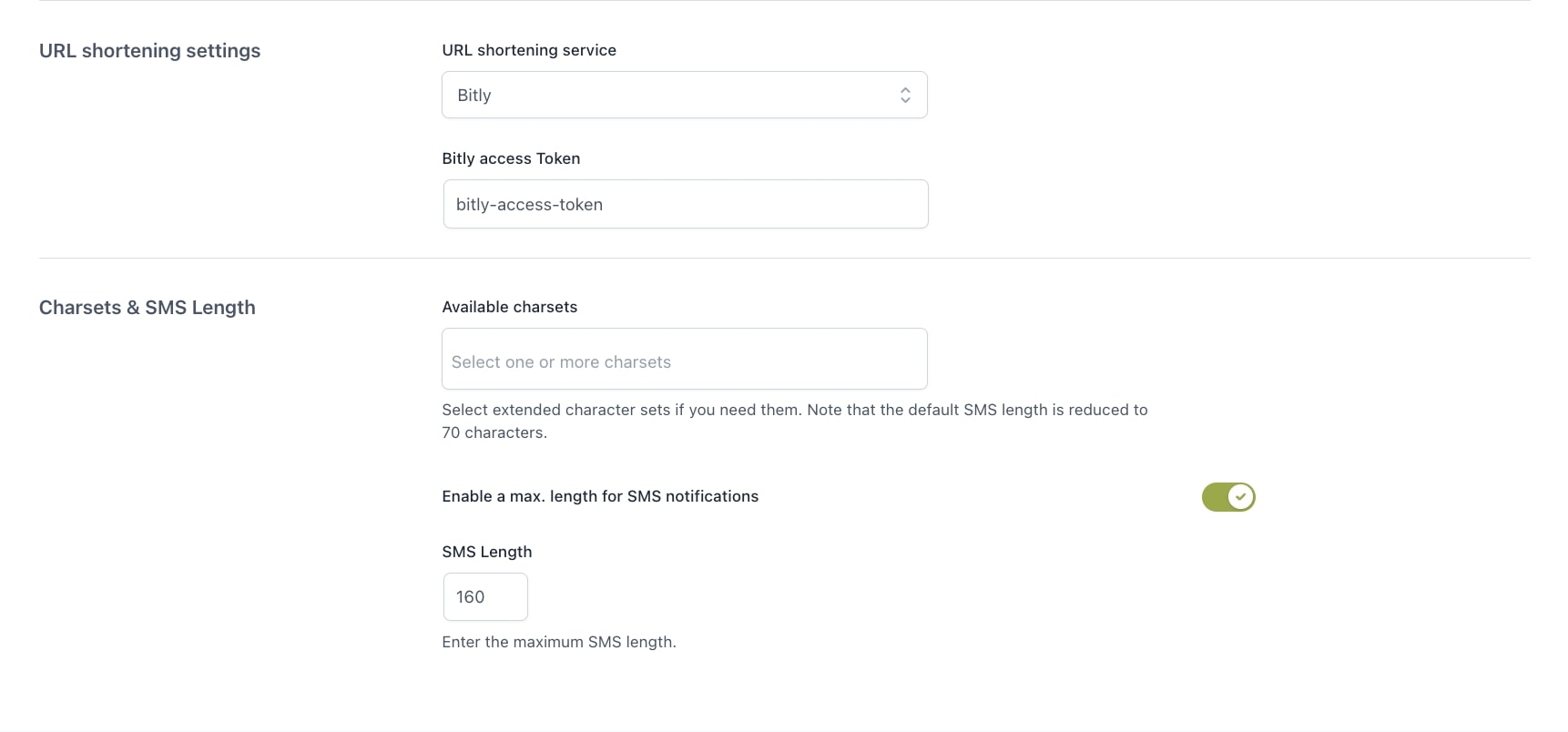 Il limite di 160 caratteri per gli SMS può essere frustrante se vuoi inviare testi con un po’ di personalità. Fortunatamente il plugin permette di abbreviare automaticamente gli URL attraverso i servizi di Bitly o TinyURL e di ottimizzare così i contenuti degli SMS.