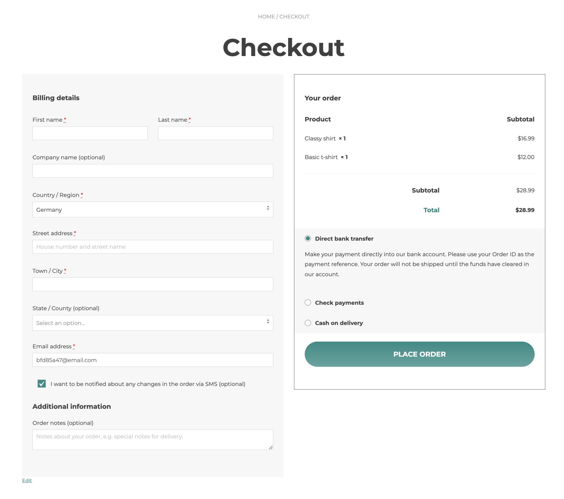 SMS notifications checkbox on Checkout page