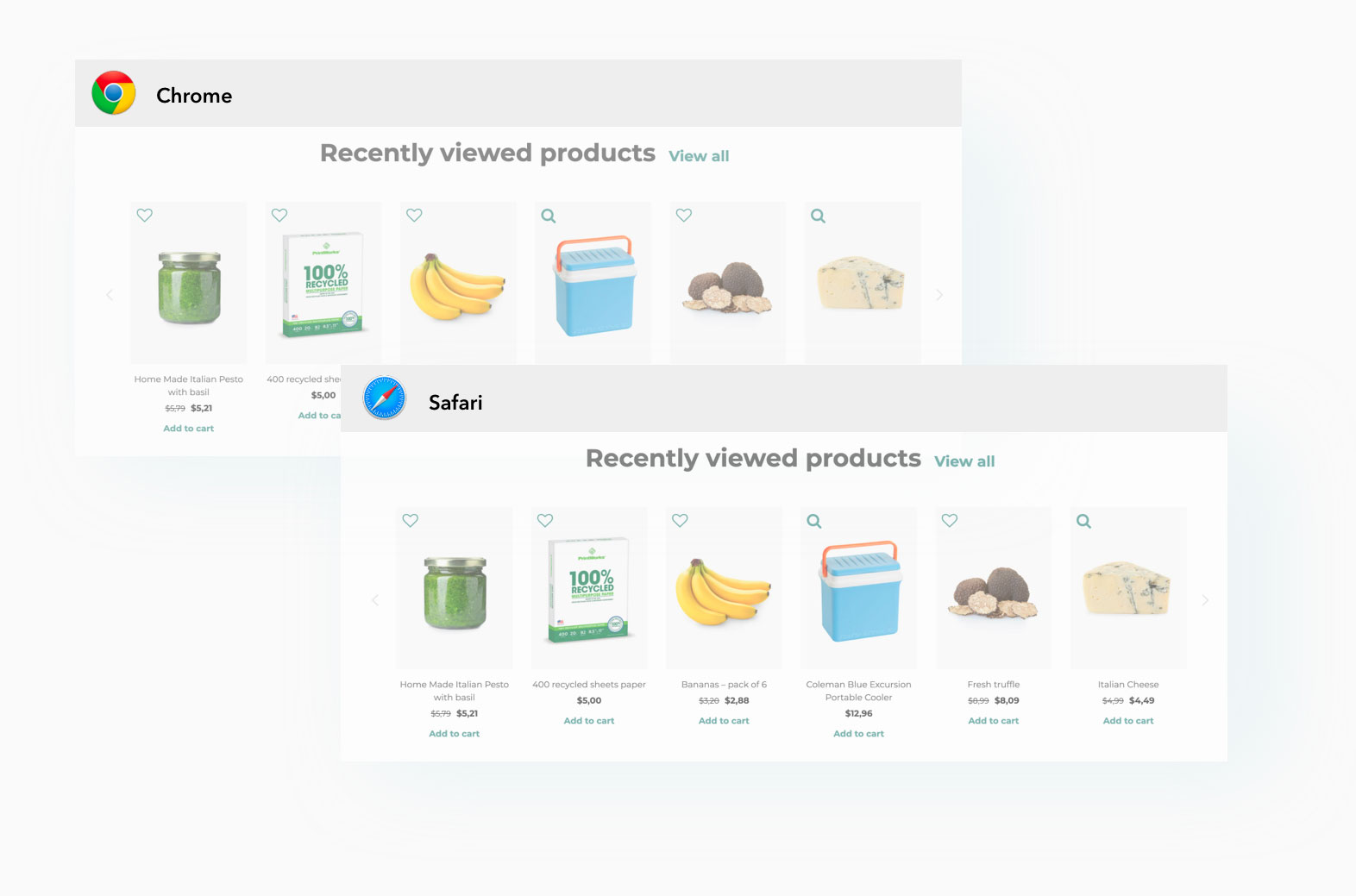 Grazie al salvataggio aggiuntivo dei dati sul database del tuo sito, i tuoi utenti potranno vedere la sezione “Visualizzati di recente” anche visitando il sito da browser diversi.