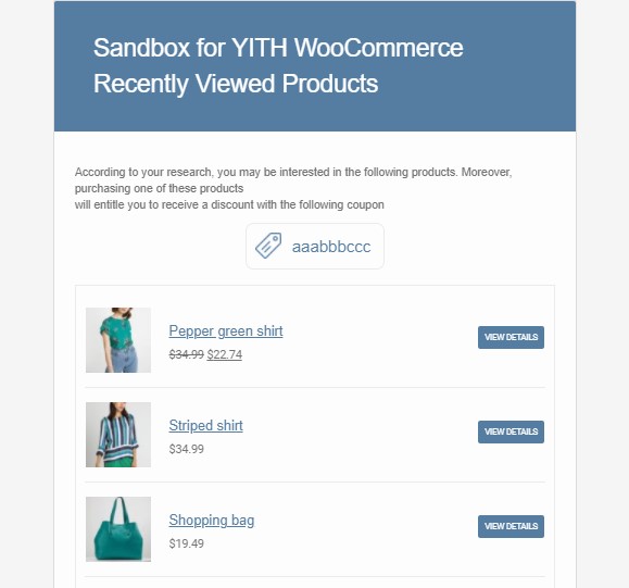 Sì, puoi attivare una notifica email e personalizzarne il testo, i prodotti da mostrare e anche aggiungere un coupon per incoraggiare i tuoi utenti ad acquistare di più. Puoi trovare tutti i dettagli sulle notifiche email qui.
