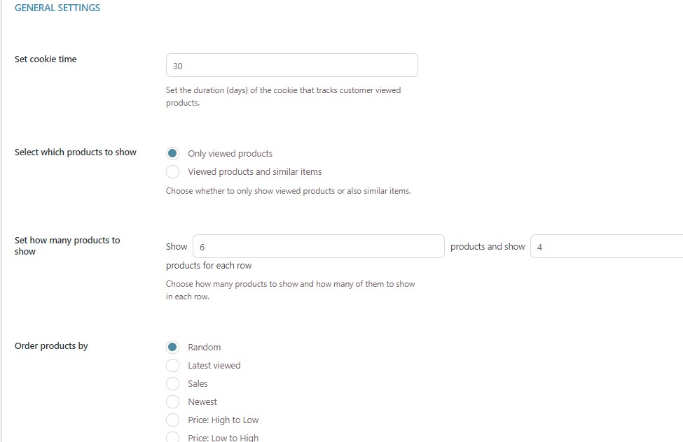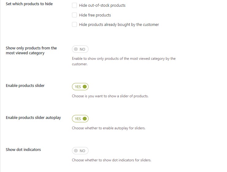 • Scegli se mostrare i prodotti visti di recente dall’utente o aggiungere anche i prodotti simili delle stesse categorie o tag