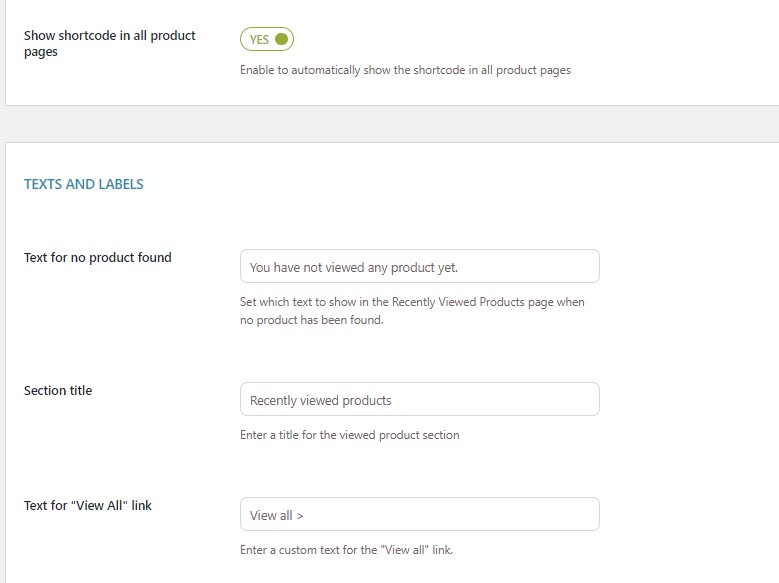 Il plugin include uno shortcode per mostrare i prodotti visualizzati di recente in uno slider (se vuoi, anche con l’opzione autoplay) del quale puoi trovare dettagli qui.