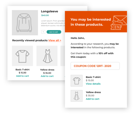 Puoi anche creare una potente strategia di marketing ed inviare email automatiche che includono coupon e offerte speciali per spingere gli utenti ad acquistare gli articoli a cui sono davvero interessati.
