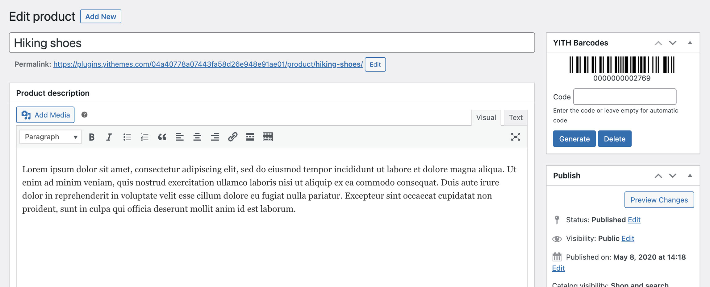 Generate QR code or barcode on WooCommerce products