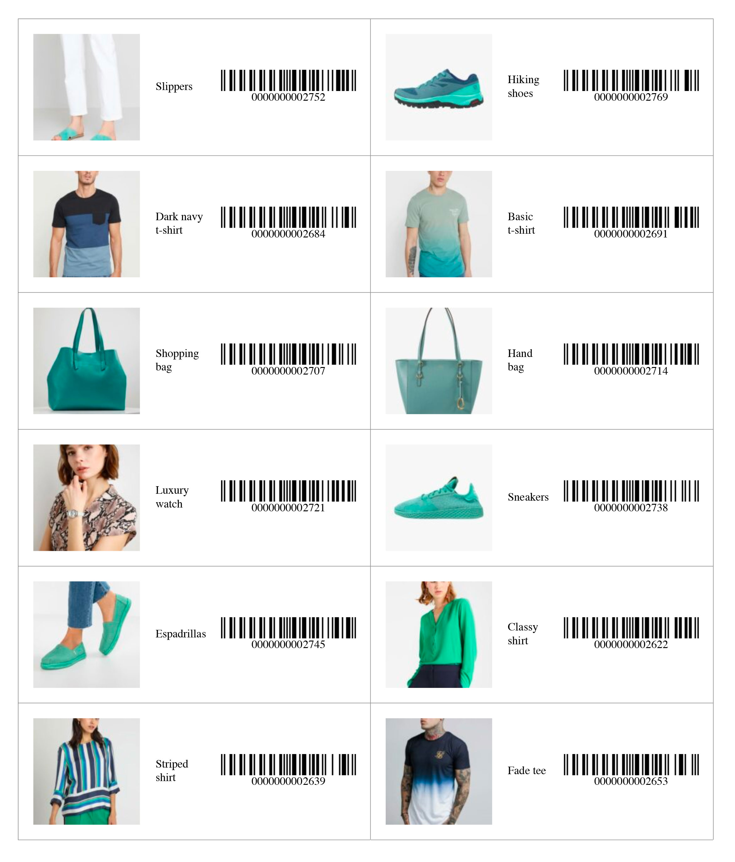 Scarica un file PDF stampabile con la lista di tutti i prodotti del tuo negozio. In alternativa puoi stampare lo stesso codice a barre più volte