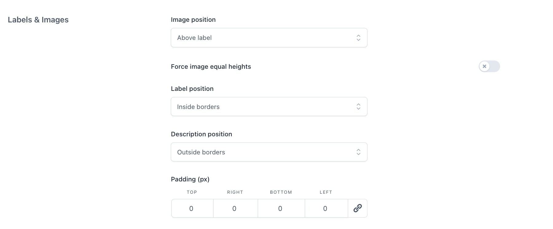 Scegli se mostrare le opzioni in verticale, una sotto l’altra, o se disporle in una griglia orizzontale. In questo caso puoi definire il numero di colonne in cui verranno suddivise le opzioni.