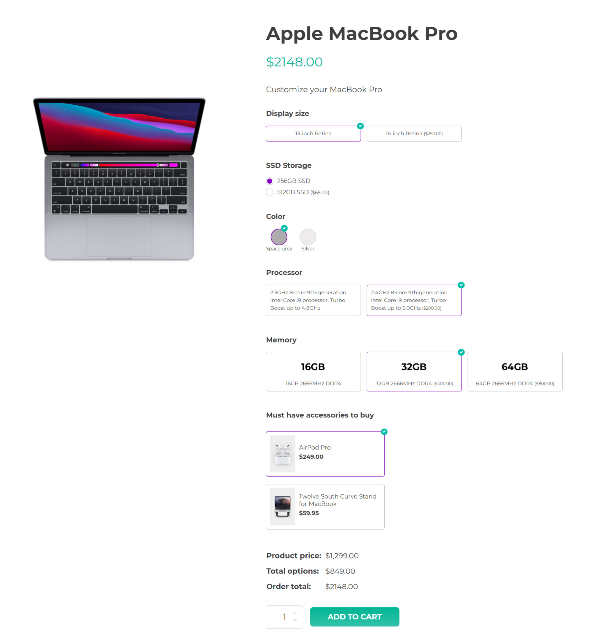 Nascondi il pulsante ‘Aggiungi al carrello’ fino a che l’utente non seleziona tutte le opzioni richieste