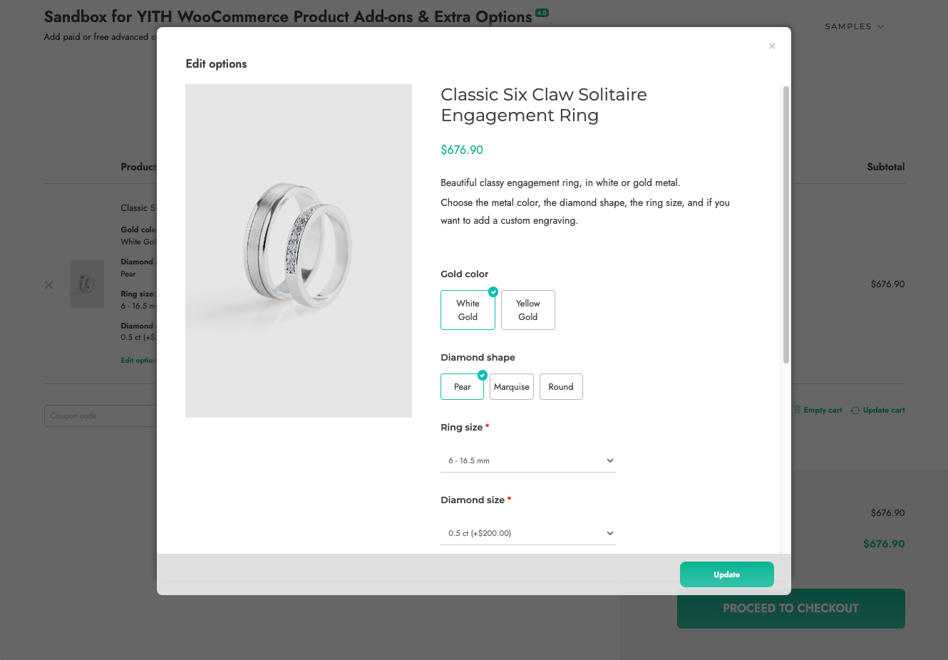 Una delle opzioni che rende il nostro plugin il più user-friendly: negli altri plugin disponibili online se l’utente decide di modificare alcune opzioni dopo aver aggiunto il prodotto al carrello deve rimuoverlo dal carrello, tornare alla pagina del prodotto e selezionare di nuovo tutte le opzioni da zero.