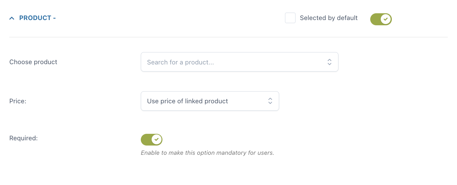 Dalla versione 2.0 abbiamo aggiunto la possibilità di inserire un prodotto come opzione: in questo modo nella pagina di dettaglio di un prodotto puoi proporre uno o più prodotti o servizi correlati o accessori e spingere l’utente ad aggiungerli in blocco al carrello con un solo clic.