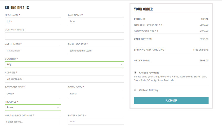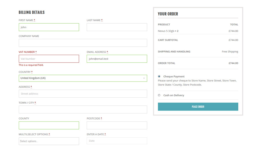 Con YITH WooCommerce Checkout Manager puoi aggiungere o rimuovere dei campi, sia campi di testo che checkbox, selettori di data, select e radio button in modo facile. Inoltre, puoi anche impostare uno stile differente per i campi di inserimento, gestire messaggi di errore e modificare la loro disposizione.